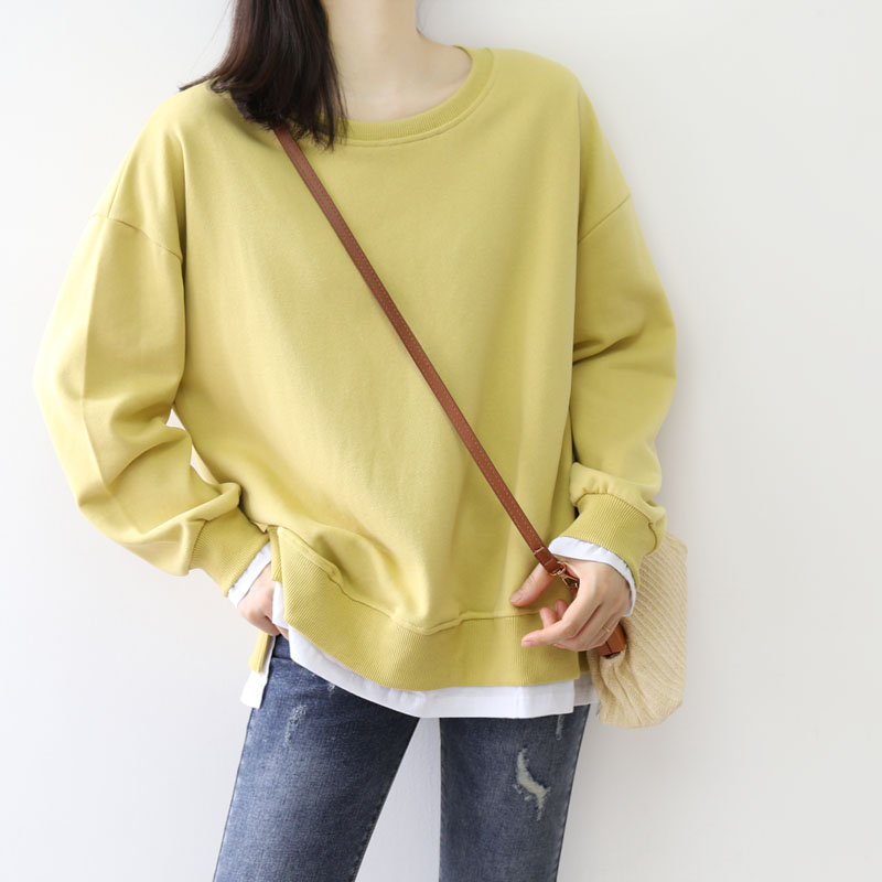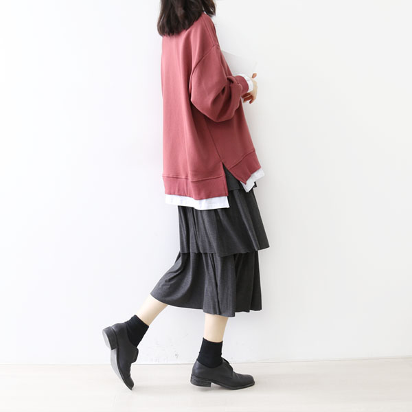 | 白シャツとの重ね着風に見えるフェイクレイヤードのスウェットです。 旬のオーバーサイズのルーズフィットでも、重ね着効果でスッキリ見えます! ◆サイズ◆ ・ワンサイズ:胸囲122cm肩幅62cm袖丈49cm着丈66-70cm ◆カラー◆ ・ピンク ・レンガ ・イエロー ・ブルー ◆素材◆ ・コットンなど 【商品について】 ・お手持ちのパソコン・携帯の画面により商品のお色に若干の差がございます。 ・サイズは買い付け先の生産表記ですが、測り方により1~3cmほど誤差がある場合がございます。 ・ノーブランド商品はタグや洗濯表示がないものもあります。 【納期について】 ・2~3週間。 【返品について】 ・サイズ交換、お色交換などの返品、交換は行っておりませんのでサイズは十分にお確かめの上、ご購入をお願いいたします。 ・海外製品は日本のものに比べて縫製が荒い場合がございます。糸の始末が悪い、ファスナーが上がりにくい、ボタンの付け方が甘いということは海外の基準では返品対象となりませんのでご理解お願いいたします。 |