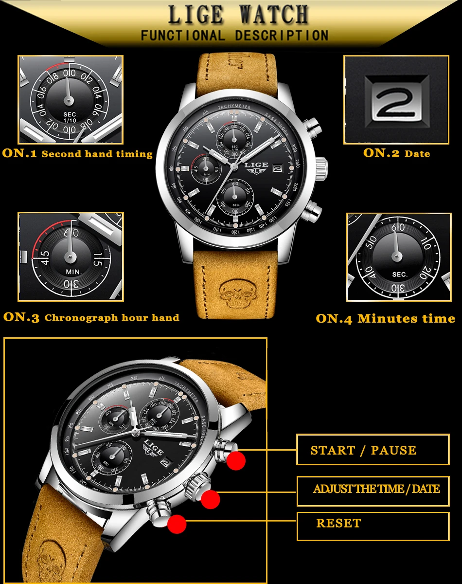 Feature:Water Resistant,Stop Watch,Auto Date,Shock Resistant,Swim,Chronograph