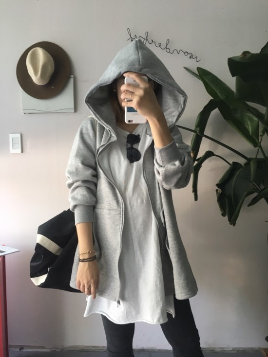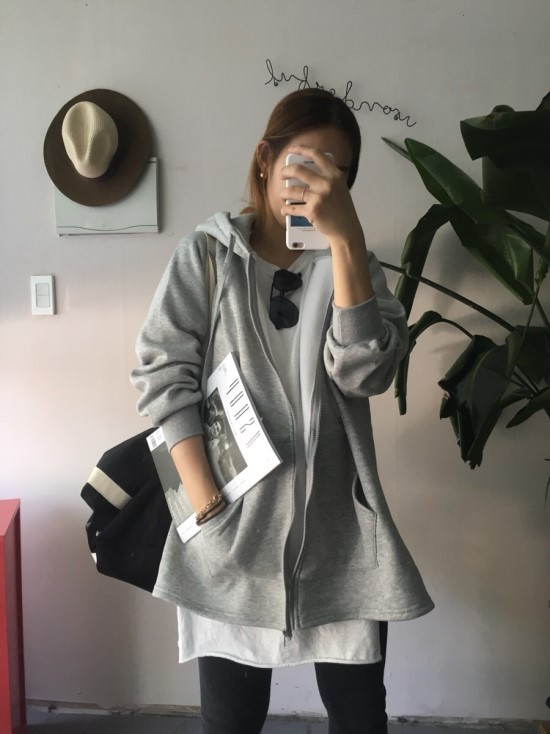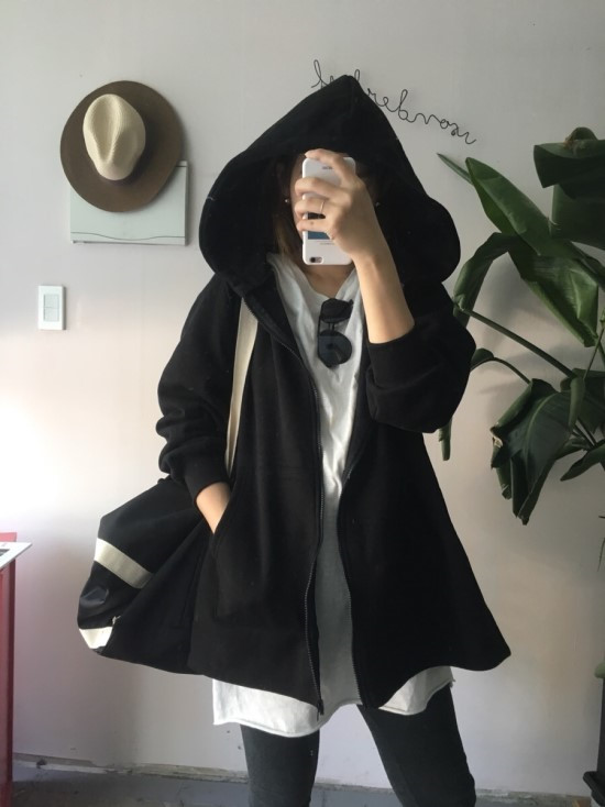 밑으로 갈수록 에이라인으로 퍼지는 기모 후드집업이에요