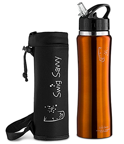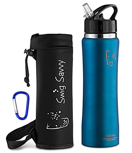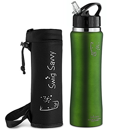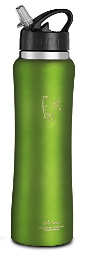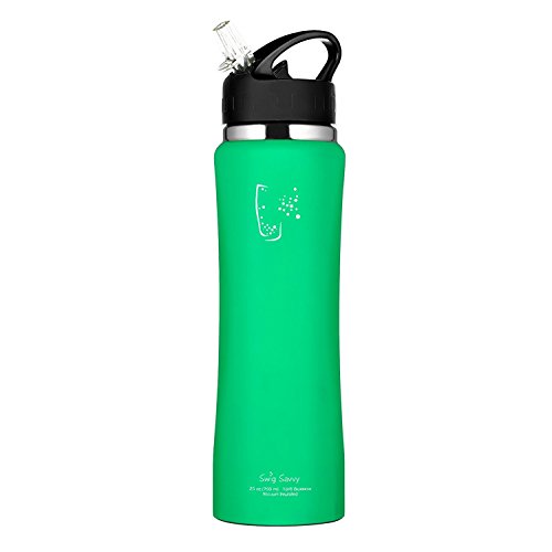 - BPA free, reusable stainless steel construction. - Ergonomic, high grip shape, perfect for carrying and drinking on the move. - Double walled design keeps drinks cooler for longer. - Ergonomic shape fits existing bottle holders. - Leak resistant flip straw cap.