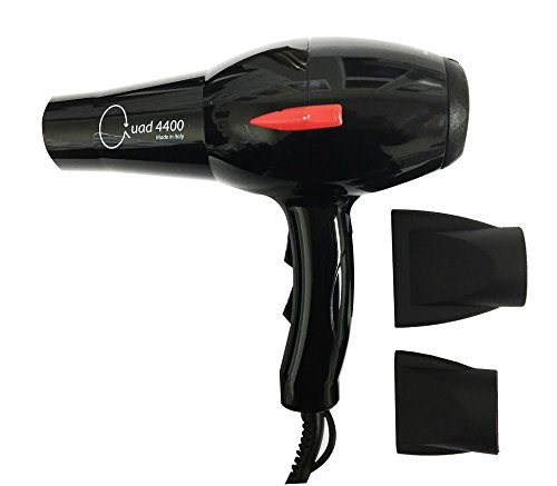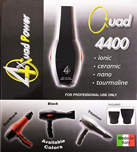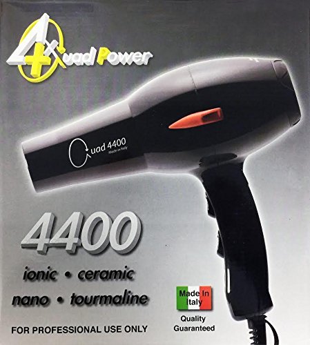 Quad Power 4400 Ceramic and Ionic Professional Hair Dryer, 1900 Watt, Made in Italy … (Black)