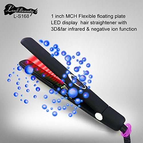 Infrared Hair Straightener - 1 Inch 3D Flexible Floating Plate Flat Iron Tourmaline Ceramic LED Display and Negative Ion Function Straightening Hair Styler...