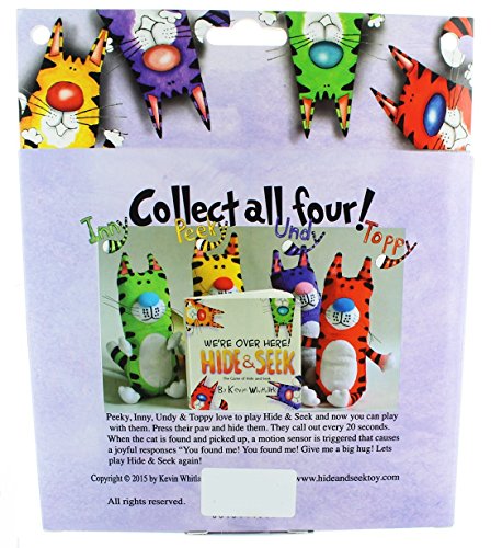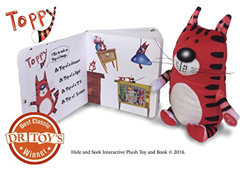 -. Binding : Toy -. Brand : Hide & Seek -. EAN : 0866800000219 -. Feature : Stuffed animal has computer chip technology which allows kids to play Hide and Seek independently / You and your child can build a collection with 4 different color options available; Sold separately / This interactive plush toy makes reading fun with a bonus book by popular illustrator Kevin Whitlark / Its engaging chip technology was invented by the same brilliant mind behind the Easy Bake Oven / This extra soft plushie was made for safety and comfort; CPSIA compliant; Recommended for Ages 2yrs+ -. IsAdultProduct : 0 -. Label : Hide & Seek Toys -. Manufacturer : Hide & Seek Toys -. MPN : 2039867 -. PackageQuantity : 1 -. PartNumber : 2039867 -. ProductGroup : Toy -. ProductTypeName : TOYS_AND_GAMES -. Publisher : Hide & Seek Toys -. Studio : Hide & Seek Toys -. Title : Extra Soft Interactive Stuffed Animal - Hide and Seek Plush Toy Cat with Book - Available in 4 Collectible Colors - Toppy Red -. UPC : 866800000219