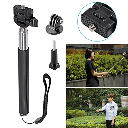 Application 1: The extendable Selfie Monopod + Tripod mount adapter + Long Screw. It can work with all compact point and digital cameras that has self-timer and tripod. Adjustable Ball-head allow you to easily adjust angle, extends your reach when taking photos.
