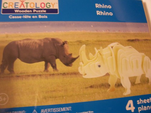 -. Feature : Wood 3-D Creatology puzzle / Rhino (4 Sheets) / Consists of 4 Wood sheets containing punchout puzzle pieces. / Assembled size is 9.8" x 3.2" x 4.8"
