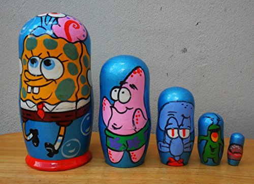 -. Title : "Sponge Bob Square Pants" Russian nesting Doll Set of 5 piece. Hand-painted in Russia.