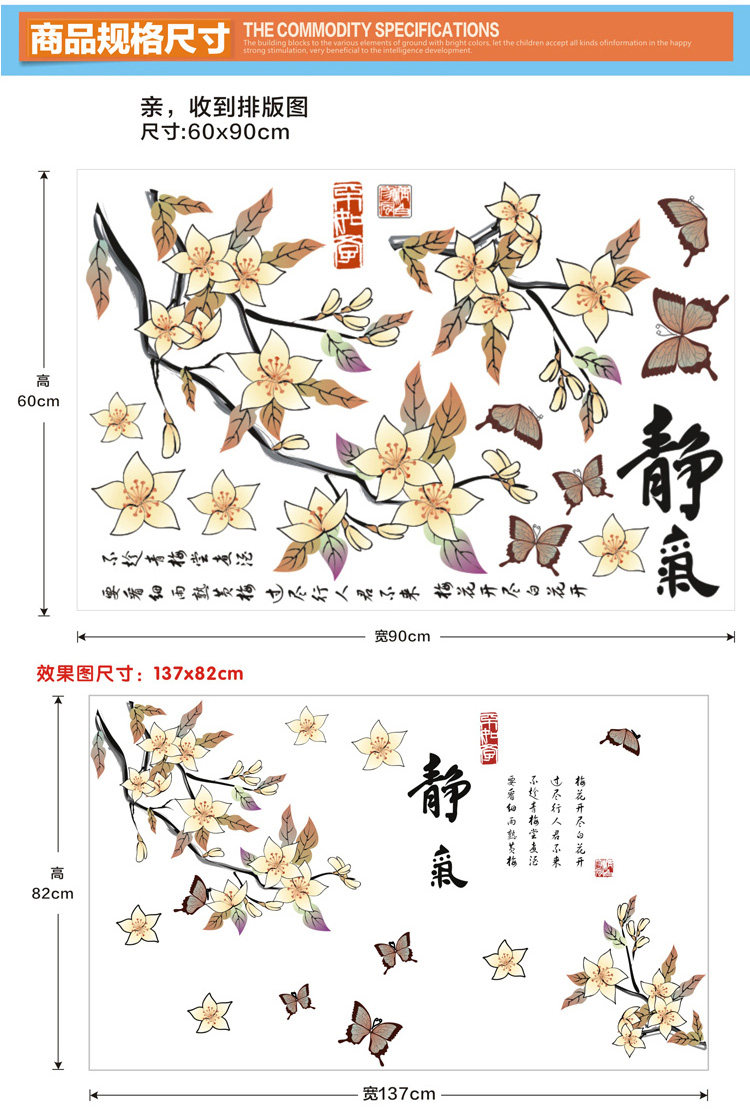 中国风古典客厅电视墙沙发背景墙贴画 家居卧室装饰可移除墙贴纸