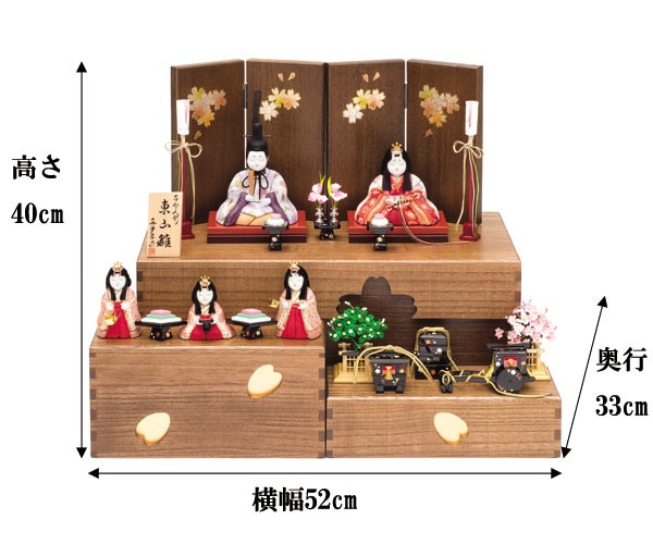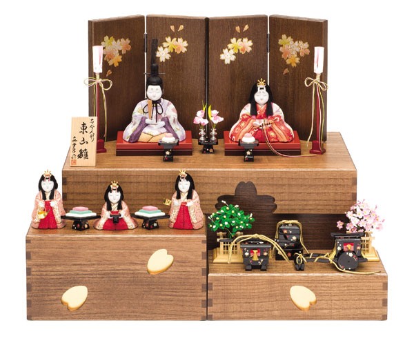・和洋室に合う高級自然木使用の台座の雛人形飾り