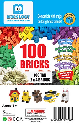 -. Feature : GREAT VALUE: 100 Large 2x4 dot / studs Compatible Bricks / COMPATIBLE - Brick Loot bricks are compatible with Mega Bloks, L.E.G.O* and major building brick systems. Each brick has a guaranteed tight fit, so you may build and create in an easy and safe way. / COLOR: TAN / STRONG AND DURABLE: Custom molded! and made of safe 100% Quality ABS plastic. Guaranteed to hold up! / CREATIVITY: Let your imagination run wild and build anything you can dream of.