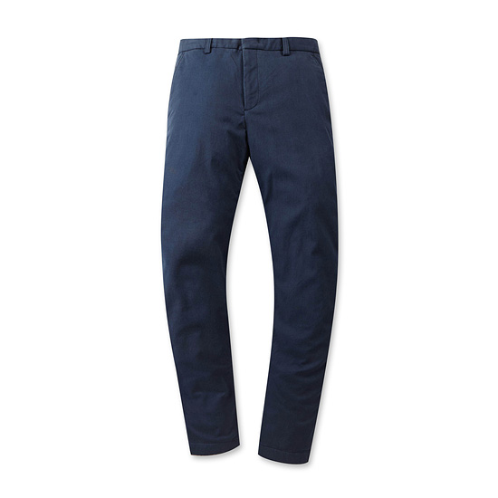 - 모던한 트윌소재와 이면 기모를 적용한 슬림핏 남성 팬츠.