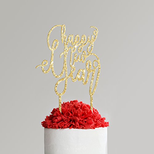 Cake Topper New Year 6.5 X 12 inches Cut Laser Color Glitter Gold