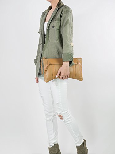 LA Leather Handbags Three Pocket Tan Leather Clutch, Brown