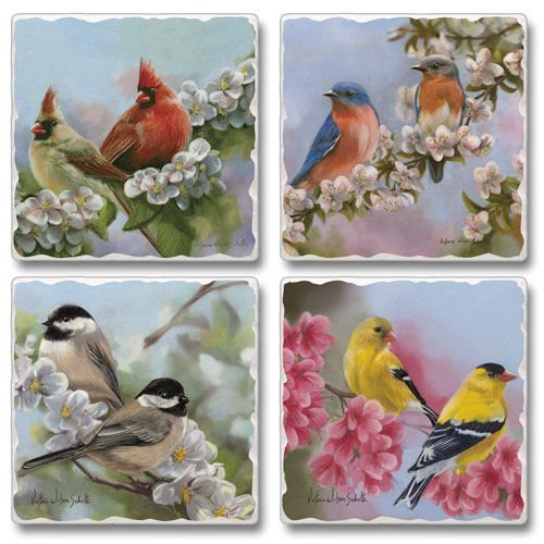 Spring Quartet Birds Highland Graphics Tumbled Tile Coasters set of 4