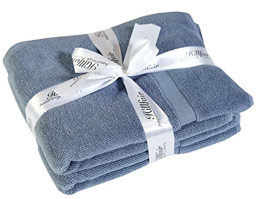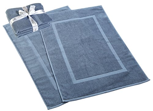 900 GSM-Hotel-Spa Tub-Shower Bath Mat Floor Mat - (2 Pack, Blue, 21 Inch by 34 Inch) - 100% Ringspun Cotton Bath Mat / Bath Rugs ,Machine Washable Cotton Bath Mats - Terry Bath Mats/ Rugs -by HILLFAIR