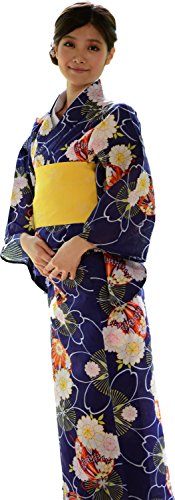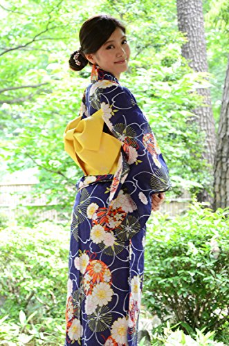 [Fabric] Yukata kimono is made of 100% Pure Cotton. Pre tied obi belt is made of Polyester.