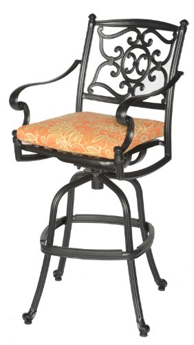 -. Feature : The Kingston bar stool features an elegant flourished seat back design / A swivel motion and footrest makes it easy to get in and out of barstool / Powder coated walnut finish matches the rest of the Kingston sectional pieces / Chair measures 24-inch x 18-inch x 30-inch