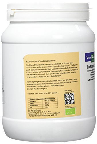 -. Binding : Badartikel -. Brand : Vita Natura Ltd. & Co. KG -. EAN : 0609728431167 -. Feature : Biozertifizierter Anbau DE-ÖKO-013 / 4:1 Extrakt, d.h. 4-fach höherer Nährstoffgehalt duch Wasserentzug / Geprüfte Apothekenware / Helle Premium-Qualität -. IsAdultProduct : 0 -. Label : Vita Natura Ltd. & Co. KG -. Manufacturer : Vita Natura Ltd. & Co. KG -. MPN : 10-200-0004 -. PartNumber : 10-200-0004 -. ProductGroup : Drogerie & Körperpflege -. ProductTypeName : HEALTH_PERSONAL_CARE -. Publisher : Vita Natura Ltd. & Co. KG -. Studio : Vita Natura Ltd. & Co. KG -. Title : Vita Natura Bio Maca Pulver, Hochanden-Top-Produkt aus Peru 1000g -. UPC : 609728431167