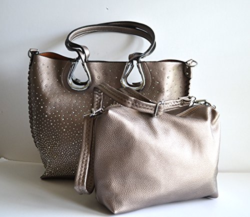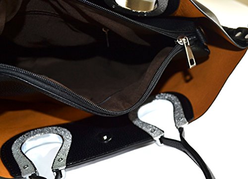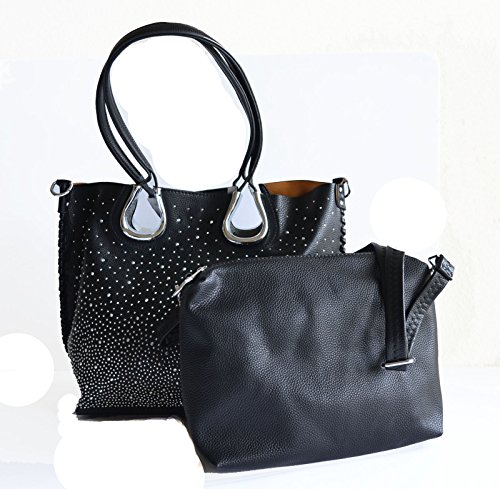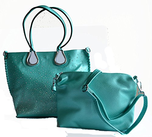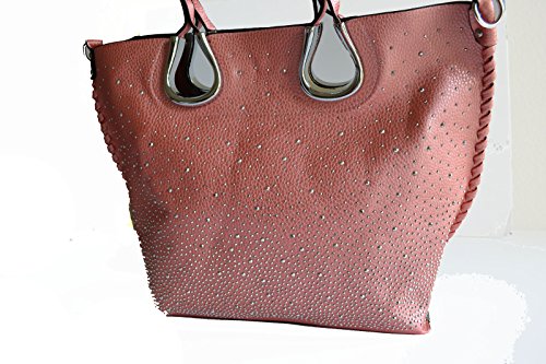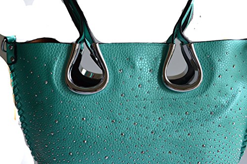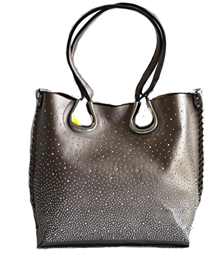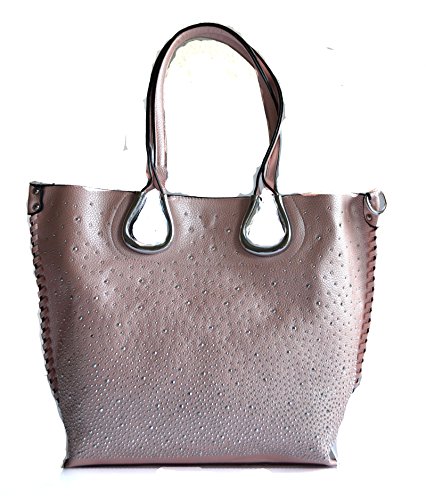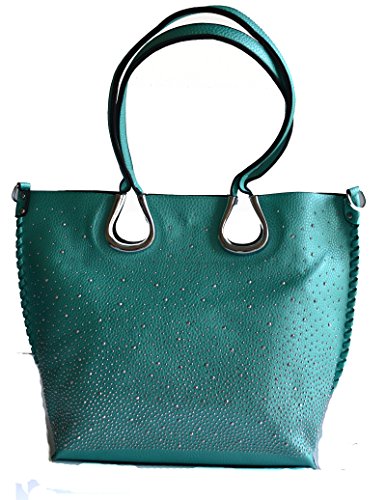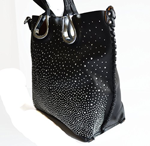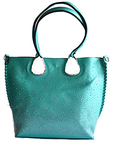 Product Description Complete your look with this eye catching light weight tote bag from Stony West. Front silver rhinestone stud accents. Whip stitched design side seams. Open top with a magnetic button closure. Removable top zipper closure middle divider pouch can be converted to a cross body bag. Comes with a detachable cross body strap. Removable zipper divider pouch has wall zipper pocket and 2 slip pockets. Item weight 25 oz approx. (including the cross body bag), Purse Dimension: 17" L x 12 1/2" H x 5" W. Straps drop lenth; 10". Crossbody Dimension: 10.5" L x 9"x 3.5" W, 48" adjustable shoulder strap length 0
