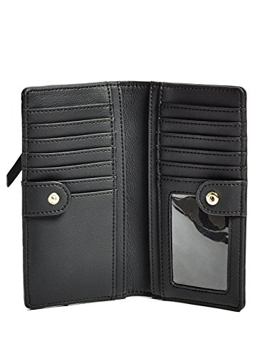 Feature : guess_factory_women_handbags_wallets_wristlets / guess factory women handbags wallets wristlets ns / black 75 faux leather billfold triangle logo / plaque front pocket features 12 card slots bill / pockets id window 16gf 610 13327352