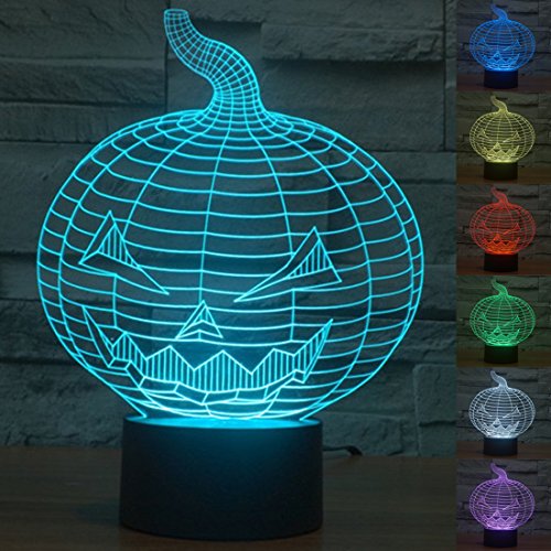 [New Item]Lmeison Pumpkin 3D Optical Illusion Night Light Multi 7 LED Colors Change Desk Lamp with USB Cable Smart Touch Button Control,Best Gift for Kids,friends,birthdays,holidays,ect