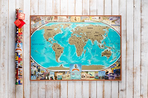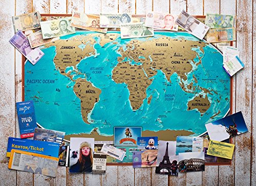 A GREAT REMINDER: Our world map is the best way to remember the good times and adventures abroad. Just use a coin to remove the gold scratch coating and reveal the countries you have been to. Plus it looks great on your wall too Special fields for fastening of notes, cards and pictures.