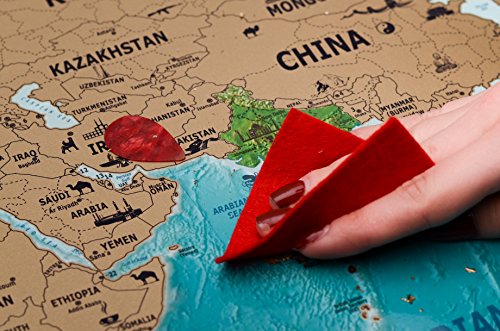 PERFECT GIFT FOR TRAVELERS for him and her! Our map comes in gift ready packaging to delight the travel enthusiasts in your life. A perfect conversation starter, give them a fun and special moment scratching the map with friends and family while sharing travel stories. It's a great learning tool for kids as well.