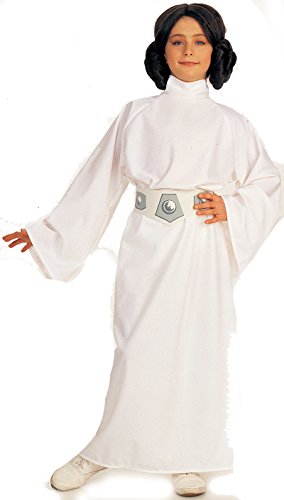 -. Brand : Rubie's -. Color : White -. Department : Girls -. Feature : Princess Leia Deluxe Child Costume With Wig / This costume includes high collar dress with belled sleeves, wig and printed belt. / Made from 100% Polyester exclusive of trim. / The manufacturer states on the package Small (Child 4-6 for 3-4 Yrs), Medium (Child 8-10 for 5-7 Yrs) and Large (Child 12-14 for 8-10 Yrs) THIS IS NOT AN ACCURATE STATEMENT SEARCH RUBIES CHART FOR MEASUREMENTS -. PackageQuantity : 1 -. ProductGroup : Apparel -. ProductTypeName : CHILDRENS_COSTUME -. Title : Princess Leia Deluxe Child Star Wars Costume 883062