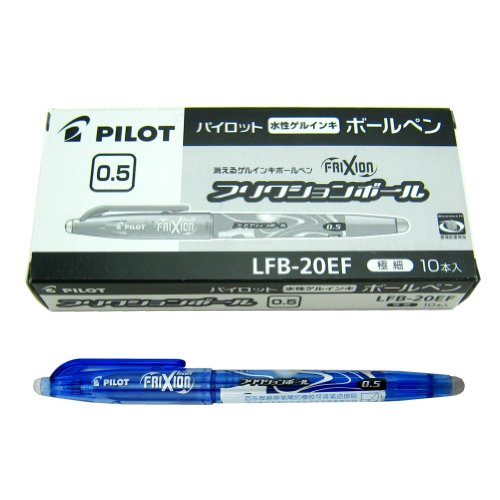 Pilot Frixion Erasable Gel Pen 0.5mm, Extra Fine Blue, 10pcs Box