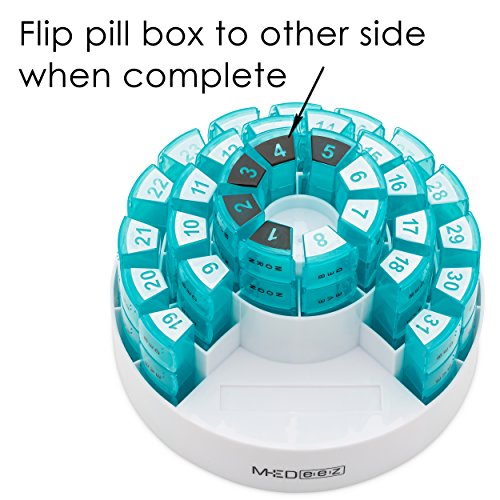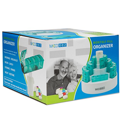MONTHLY PILL ORGANIZER Organize 31 days of pills at one time with individual daily Pill Organizers. Each Pill Organizer has FOUR (4) TIMES A DAY COMPARTMENTS making pill management simple and precise; MORNING - Breakfast, NOON - Lunch, EVENING - Dinner, NIGHT – Bedtime.