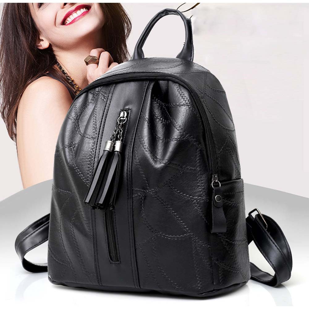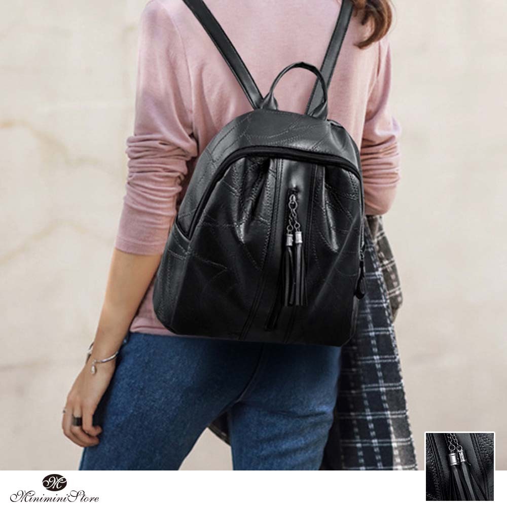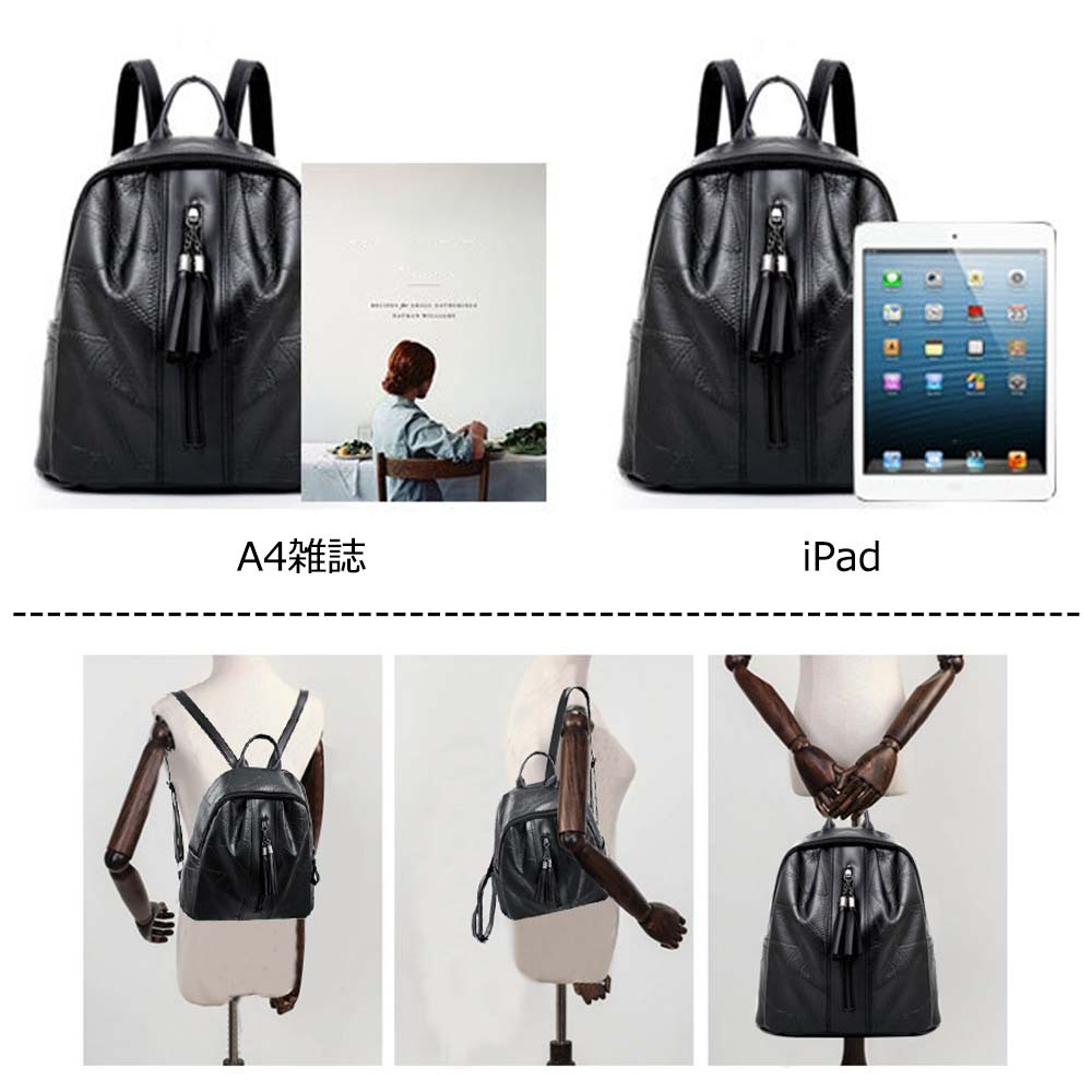 丈夫なフェイクレザー素材で仕上げたシンプルなデザインのリュックサック