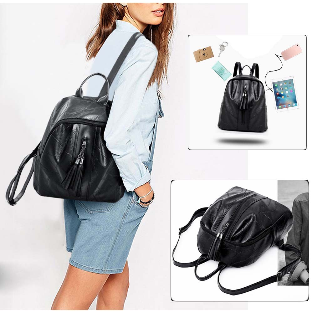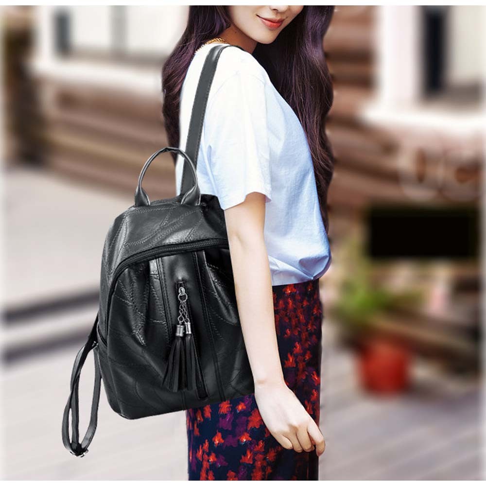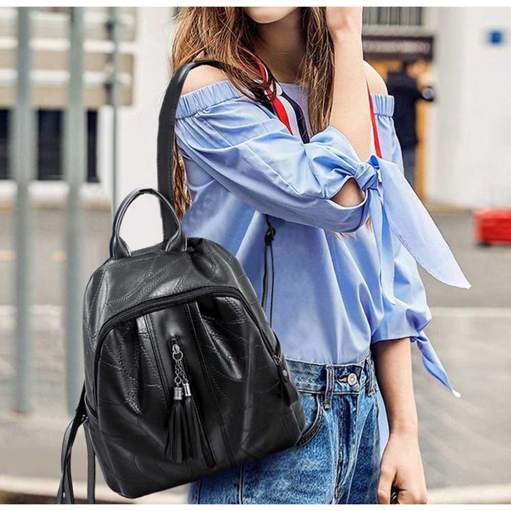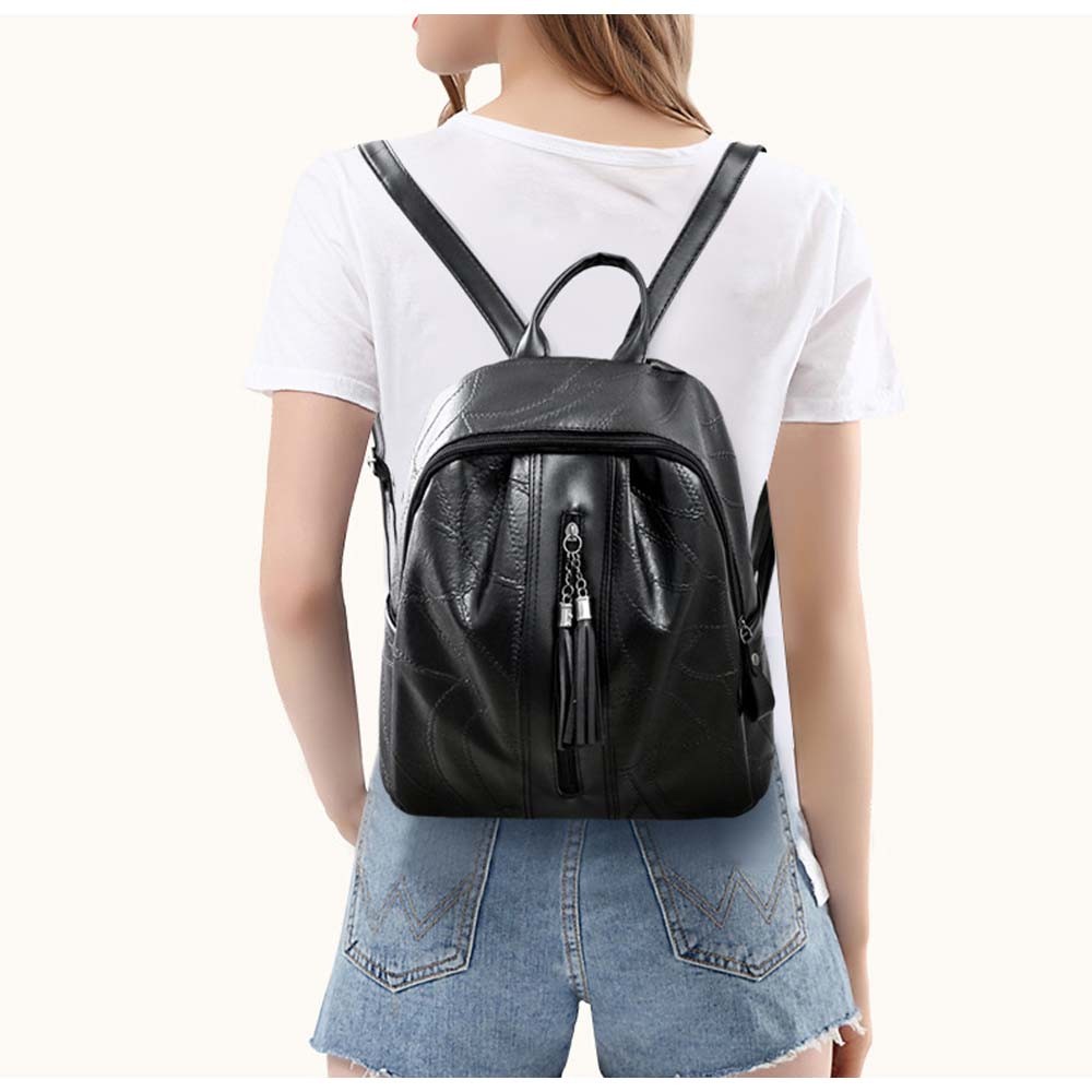 丈夫なフェイクレザー素材で仕上げたシンプルなデザインのリュックサック