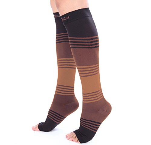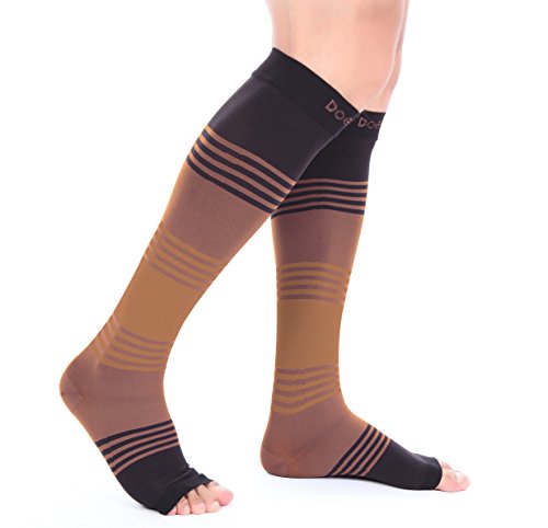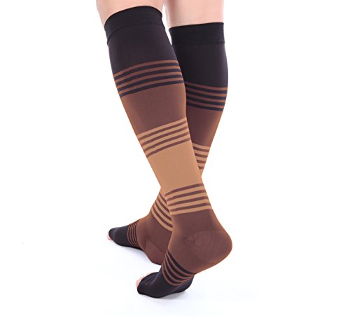 - GET YOUR SIZE: The fit and construction of our sleeves ensure that the fit is snug without discomfort by bunching or slipping during activity. Designed for men and women, these are available in a wide selection of sizes and colors, including Argyle patterns - check the sizing chart in the pictures area. The designs include toeless (open toe), closed toe and calf sleeves. The socks deliver medical grade 20-30 compression and are knee high and can be used during pregnancy.
