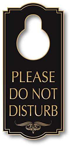 Door Sign, Legend - Please Do Not Disturb - Door Hanger Black Plastic with Gold Text, 4" X 8" - Made in USA - Indoor and Outdoor Use - A87-07