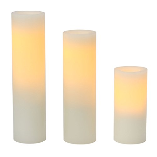 Candle Impressions CAT63539CR3 4, 6, and 8-Inch Slim Pillars, Smooth Flameless Candles, Unscented, Cream, 3-Pack