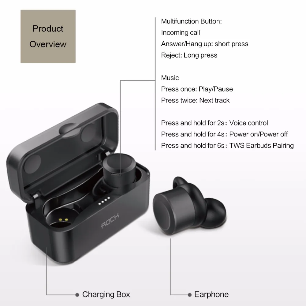 Function 4:Bluetooth Headset Handsfree Earbuds TWS K2 True Wireless Stereo with M