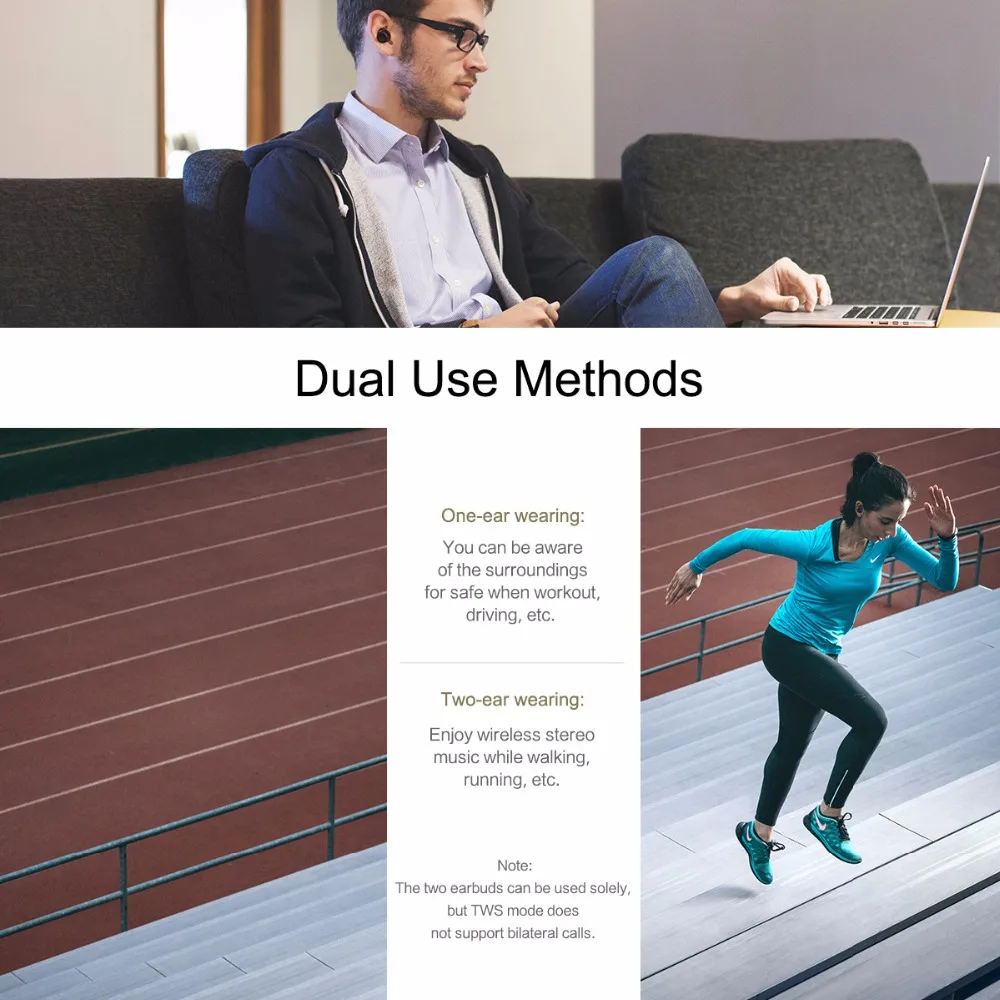Function 1:Mini Twins True Wireless Bluetooth Earphones CSR 4.1 Stereo Earbuds