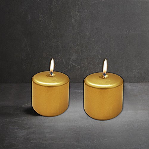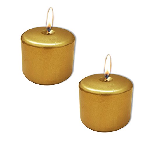 Gold Metallic Candle Pillar 3x3 Inch Gift Candle Set of 2 Great for party & celebration Holidays