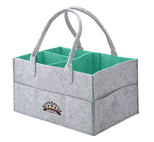 - ✅DESIGNED TO COMPLIMENT YOUR NURSERY DECOR – Our diaper caddy basket is designed with neutral grey colors to look good in any room. It looks good on your changing table, on top of a dresser or next to the diaper pail and is an essential item for your diaper changing station. Easily move the tote around using the long handle.