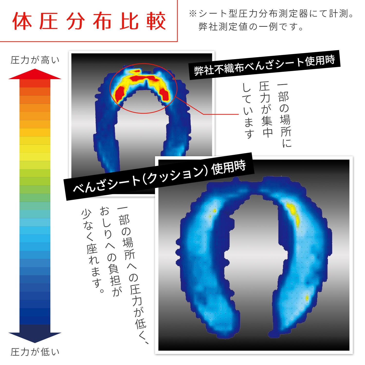● Dispensing the body pressure reduces the burden on the buttocks so it is comfortable for a long time.
