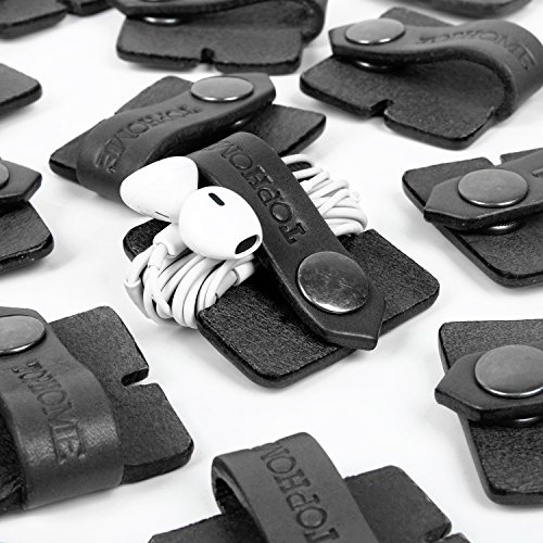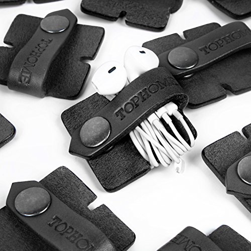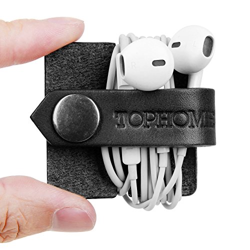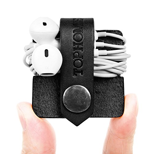 TOPHOME Cord Organizer Holder Headset Headphone Earphone Wrap Winder/ Cord Manager Black Cable Winder with Genuine Leather Handmade