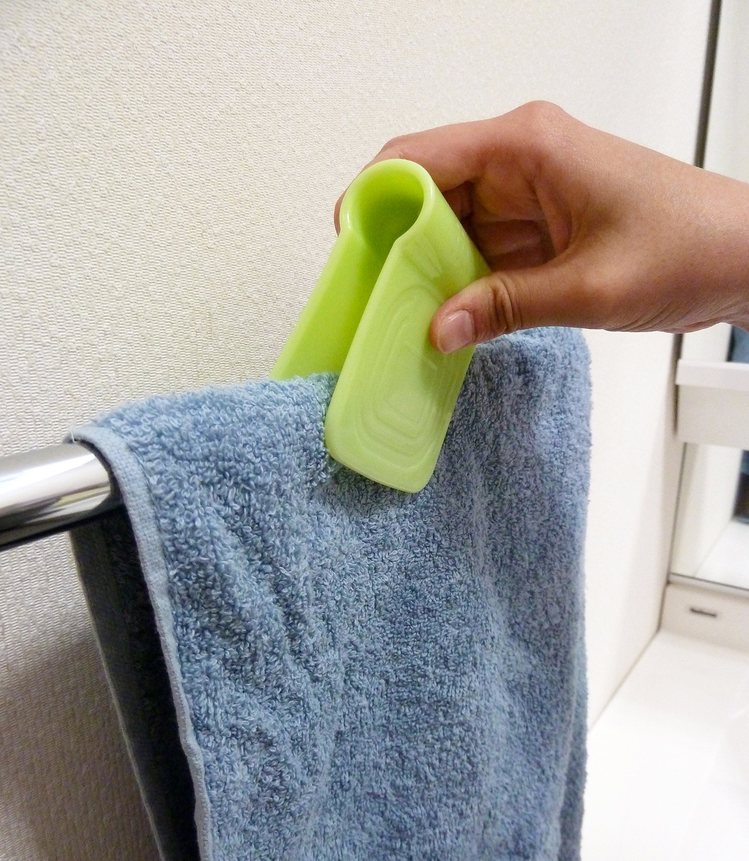● Just pinching from the top of the towel prevents towel drift