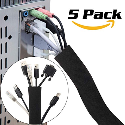 Cable Management Sleeve, Dwarm Adjustable Cord Management Cover for TV,Computer,Home Entertainment,19 - 20 Inch Flexible Neoprene Cable Organizer- 5 Pack