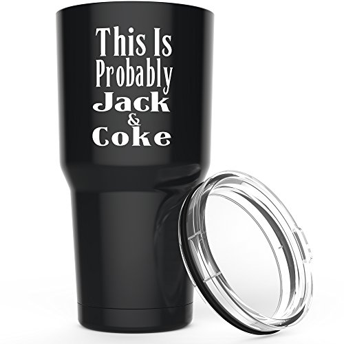Drinks taste better at the right temperature, so invest in a high quality insulated travel mug and always enjoy your coffee hot and your soda cold! An ideal coffee tumbler gift for friends, family and co-workers our THIS IS PROBABLY JACK AND COKE Stainless Steel Tumblerfrom One Stop Tumbler Shop could even be the funny boss gift that gets you a raise!