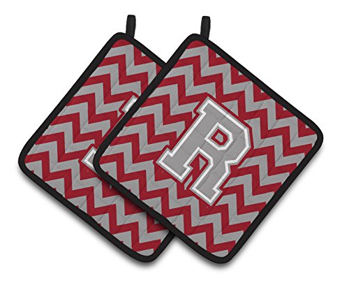 Caroline's Treasures Letter R Chevron Crimson & Grey Pair of Pot Holders CJ1043-RPTHD, 7.5HX7.5W, Multicolor