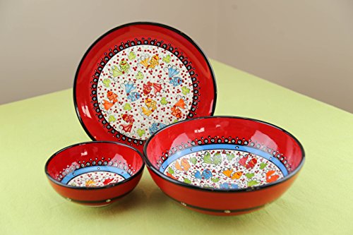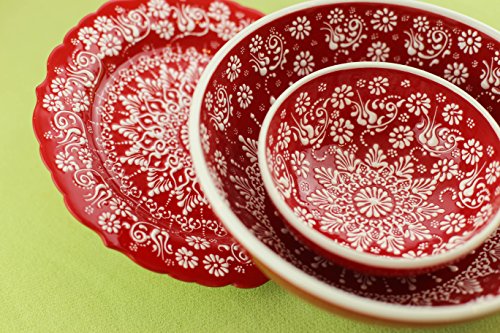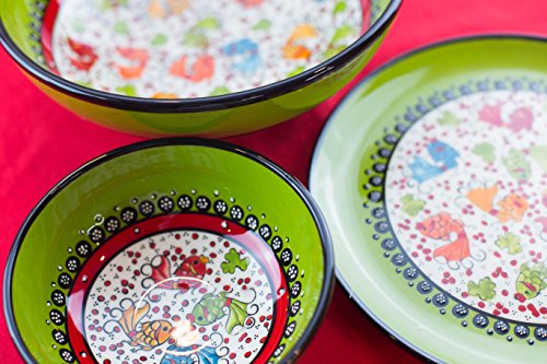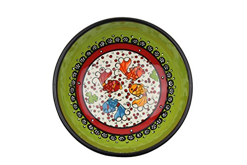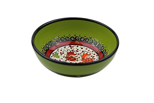 Handmade Ceramic Decorative Soup and Cereal Bowls - Set of 2 - different colors and patterns - 6 inch - 16 oz great serving Bowls (Mediterrenean Green)