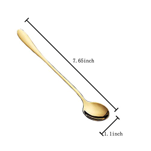 Long-handled ice tea spoon, cocktail stir spoons, stainless steel coffee spoons, Gold ice cream scoop Set of 6