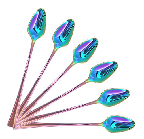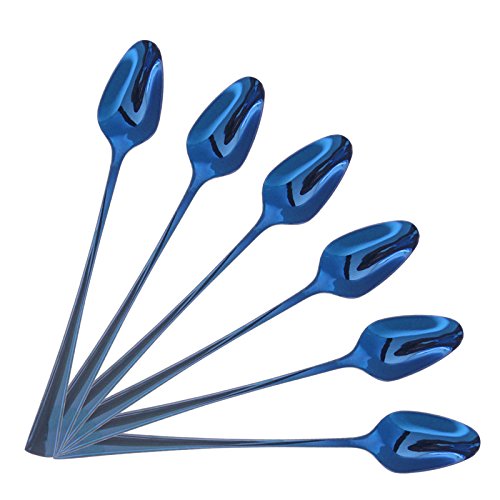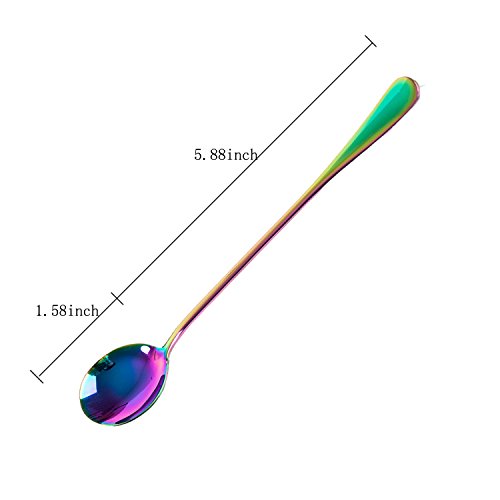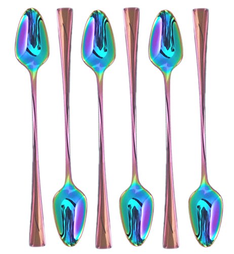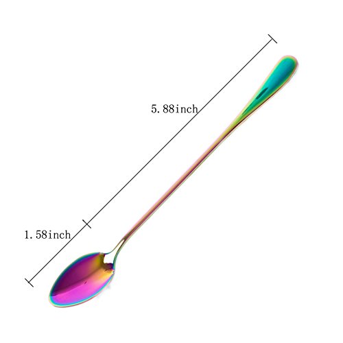 Long-handled ice tea spoon, cocktail stir spoons, stainless steel coffee spoons, Colored ice cream scoop Set of 6