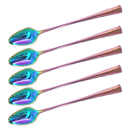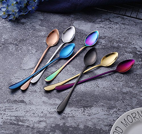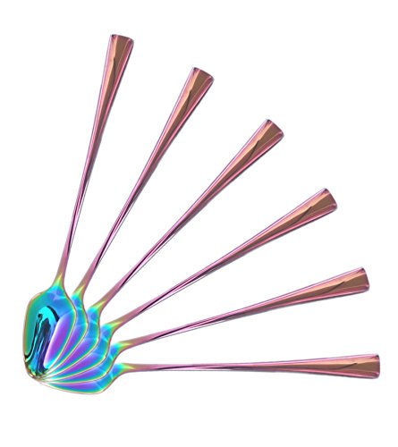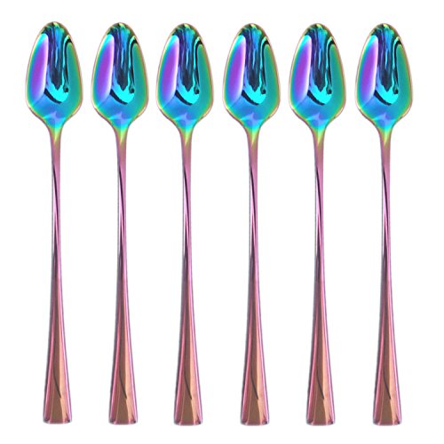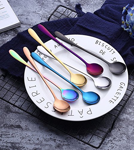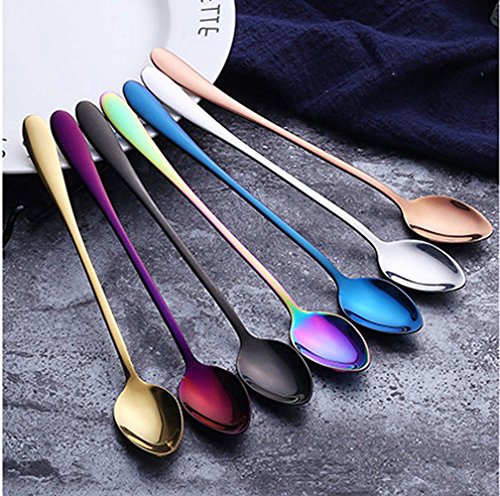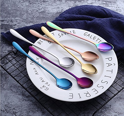 Long-handled ice tea spoon, cocktail stir spoons, stainless steel coffee spoons,Colored ice cream scoop Set of 6