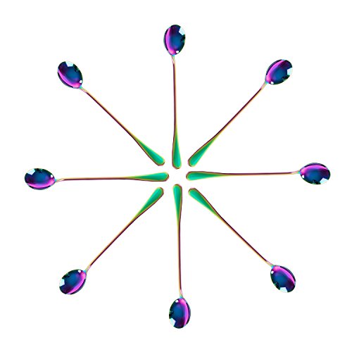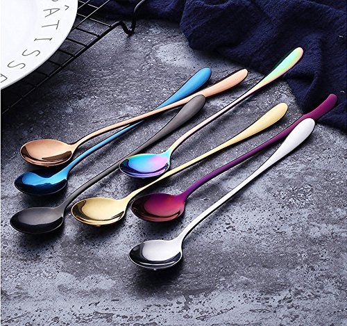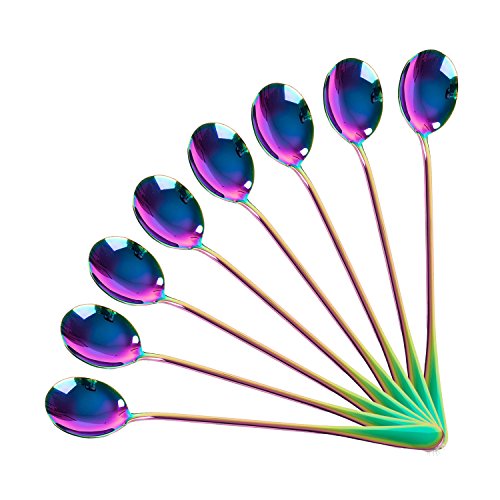 Long-handled ice tea spoon, cocktail stir spoons, stainless steel coffee spoons, Colored ice cream scoop Set of 8