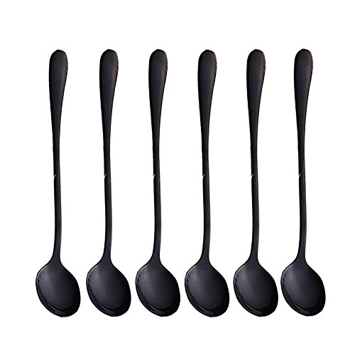 Long-handled ice tea spoon, cocktail stir spoons, stainless steel coffee spoons, black ice cream scoop Set of 6